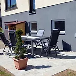 Along with self-catering amenities like an equipped kitchen, this apartment also offers an outdoor dining area.